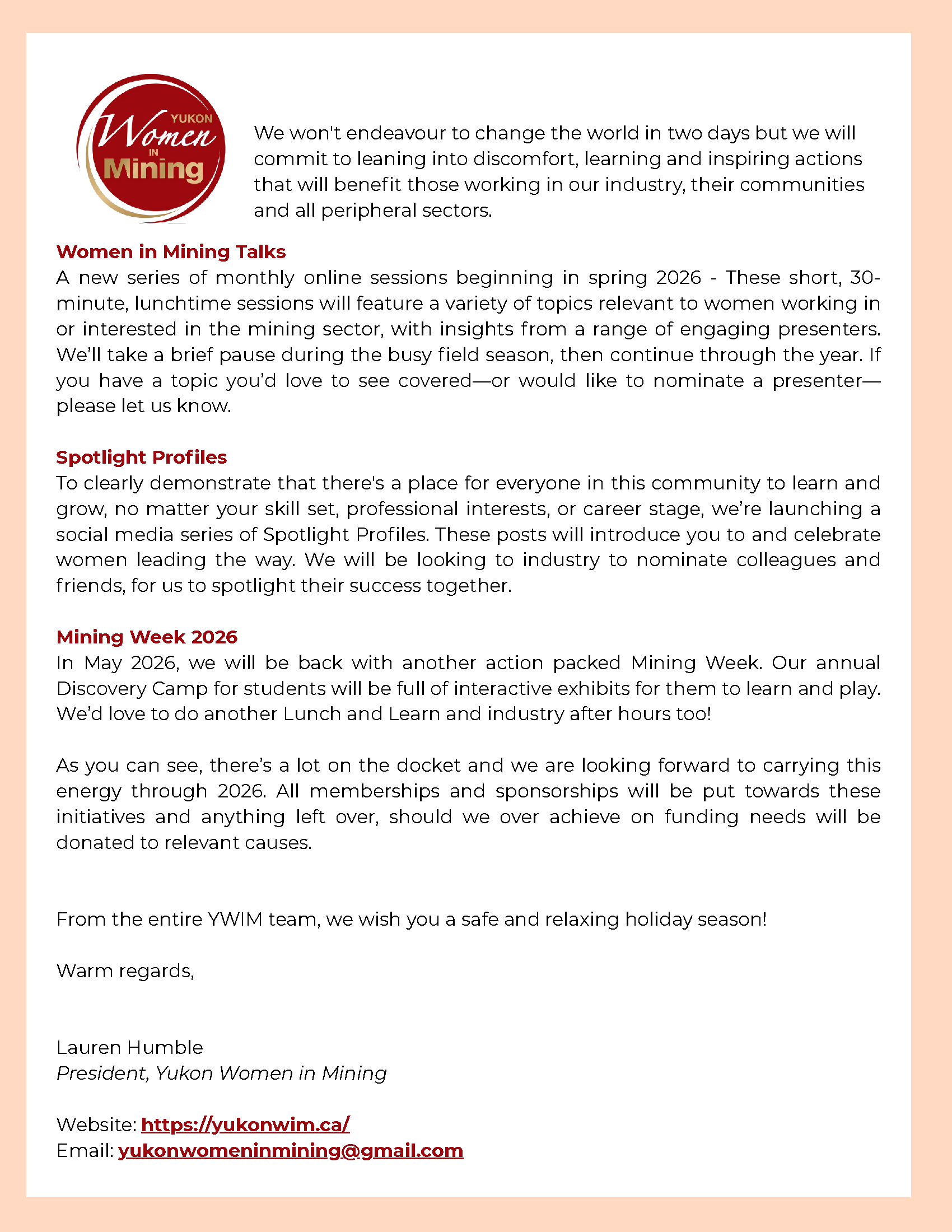 Presidents Update - December 2025